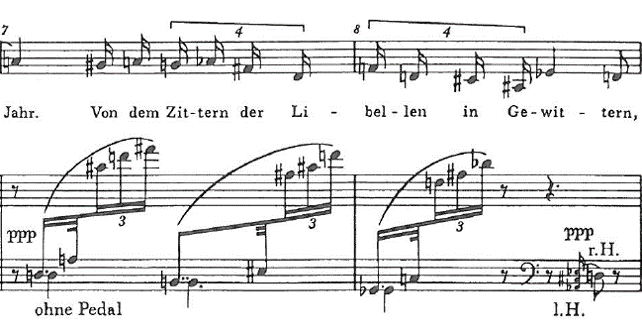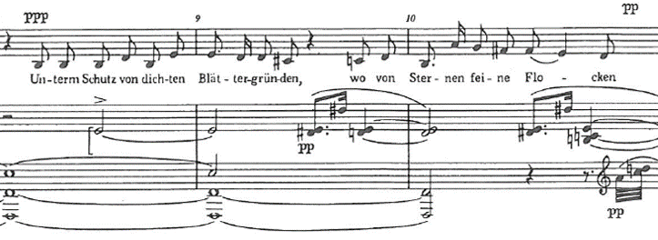 Figure 5: Arnold Schönberg: Das Buch der hängenden Gärten, Op. 15, No. I, bars 8-10