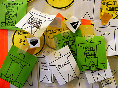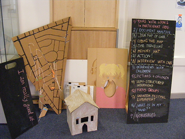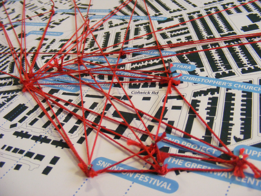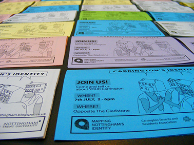 This exposition explores the role of creative practices in creating methods for public engagement and the promotion and recognition of tangible and intangible heritage at a local community level. It argues that principles of participatory design and co-creation have the power to contribute to community social cohesion and development. A literature review covering the main concepts and methods is introduced to provide an appropriate context for the main case study: Mapping Nottingham’s Identity. This research project includes the methodological and conceptual framework that were piloted and tested in collaboration with three localities within Nottingham (Sneinton, Carrington, and West Bridgford), including different stakeholders (community organisations, higher education, primary schools, local authorities, and the general public), producing a variety of outputs (a participatory methods’ toolkit, performative maps, community furniture, exhibition, websites) and reflecting on their role in creating meaningful interactions and place-making.