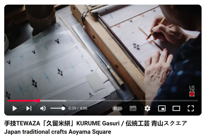 Kasuri: traditional Japanese textile dyeing and weaving technique, notable for its characteristic blurred or “feathered” patterns. In English, this technique is often referred to as ikat. Kasuri has a long history, with unique styles and methods that set it apart from other fabrics. Is made by partially dyeing the threads before weaving, so that the patterns emerge as the fabric is woven. In kasuri, specific segments of individual threads (either warp or weft) are partially dyed before weaving. The threads are bound or tied in certain areas to resist dye, similar to tie-dye or batik. The dyed sections are carefully planned so that, once woven, they form the desired pattern. This process is intricate, as it requires precise alignment and planning. After dyeing and drying, the prepared threads are woven into fabric. As the dyed threads are woven, they create the characteristic blurred patterns unique to kasuri. The “feathered” edges of the pattern are due to the slight misalignment of the dyed segments during weaving, resulting in a soft, organic look.