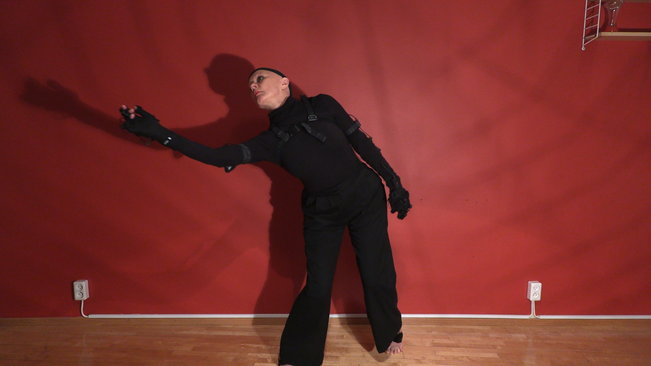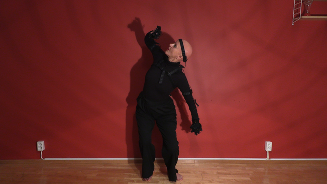 The process of extracting human movement patterns from the project's human performer, Alwynne Pritchard, has begun with the development of choreographic material. We started by looking at movements tied to daily tasks. Then, we moved on to more typical dance-like material. The idea was to experiment with different movement types to see how they would be experienced when “performed” by a kinetic sculpture.