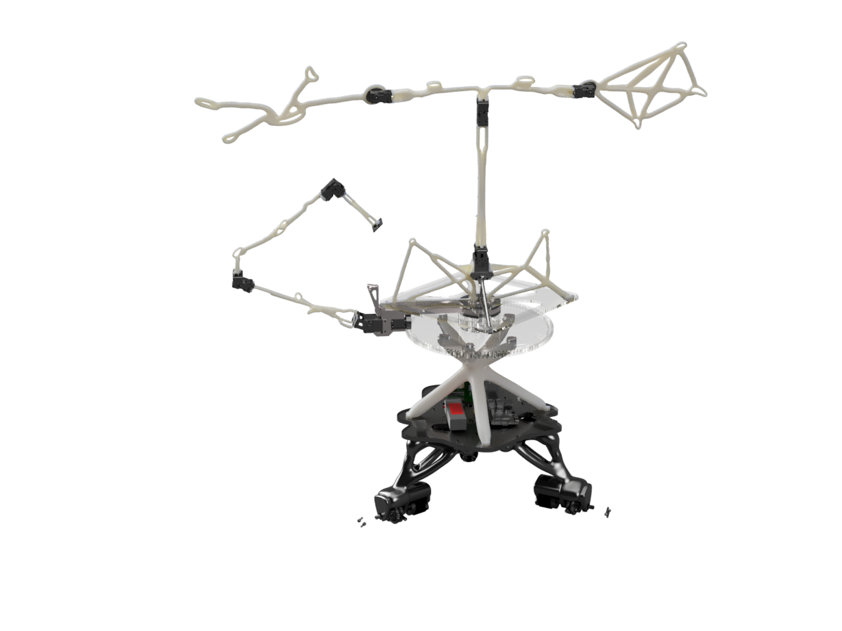 When developing kinetic sculptures that embody a certain level of movement capability, the physical characteristics of the sculptures become of paramount importance. Weight and “limb” layout become critical since the actuators available for this project have limited power density, and the construction materials limited strength-to-weight ratio.