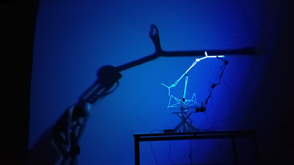 This data is, in turn, used to control movement powered by actuators driving the kinetic sculptures. By doing so the project aims to investigate whether some remnant of “humanity” will be recognizable or perceivable even when performed by completely non-anthropomorphic kinetic sculptures.