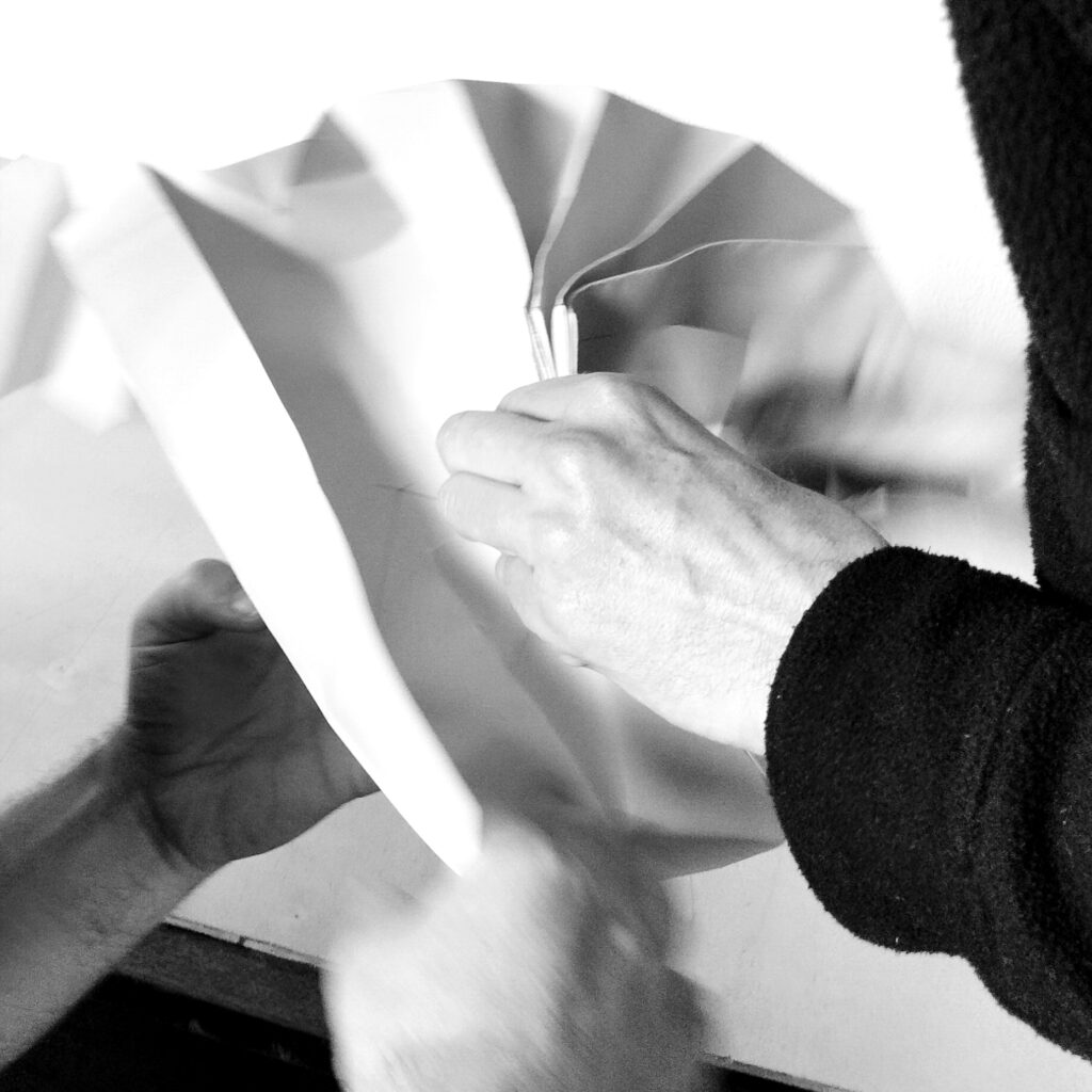 It’s just folding. The challenge is basically, what they need is a dark room. We’re trying to replicate something like that, but foldable. Folding has a lot of potential to create spaces that can be small. So then you start trying. It’s trial and error. As it should.