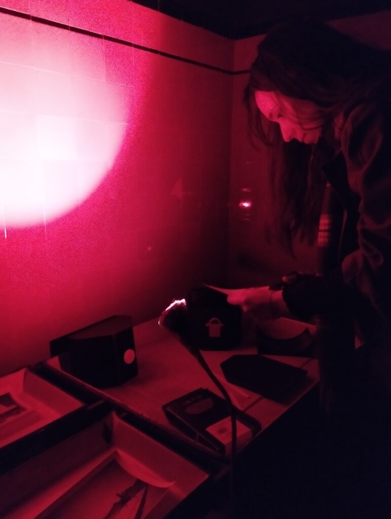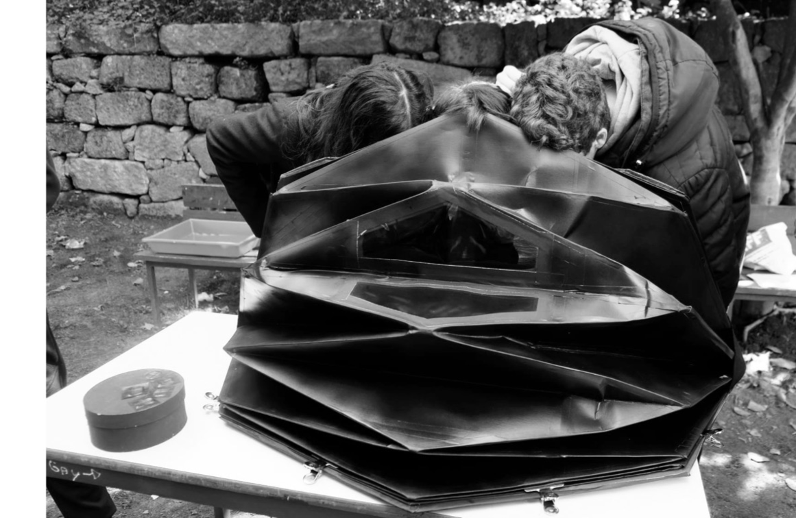 The first axis refers both to research into biochemistry-based developing techniques - such as caffenol or other plant-based developers - and to the creation of ecobjets - devices for capturing and producing images using sustainable and/or reusable materials. Part of the development of this axis is the investigation of pre-existing techniques and objects and their exploration through creative proposals and artistic workshops. These proposals have taken place in various contexts: artistic residencies, school activities, and collaborations with a local development association and its surrounding community, thus giving shape to the second axis of action in the field of artistic education.