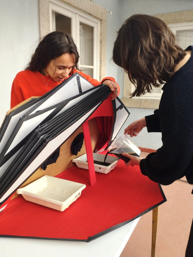 Casa da Imagem and Fine Arts School of Porto University (FBAUP) were working on developing a process to develop pictures without chemicals and more ecological. How do we democratize this idea. They went to the streets, schools and other places, to do workshops and they needed some kind of portable photolab. That’s how it came to us. How can we make something that’s practical that can do the photo development in the public space without taking too much space to transport? How do we include some ideas about the history of photography and about ecology in the design of this object?