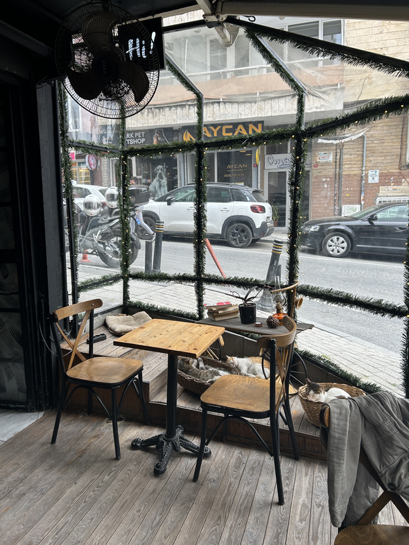 After my last performance, I wanted to perform in a café where there are random people, so I could reach more people. While I was looking for a place like that, my sister told me there is a café in her neighborhood that might be open to this idea. So I went there to talk to the owner and see the place. I took the photos of the place so that I would be able to plan where I would place myself and how I could use the space. The owner said he completely supports the idea, and we agreed on making the performance after 2 days.