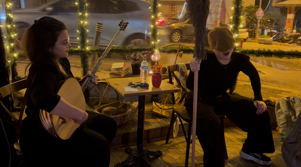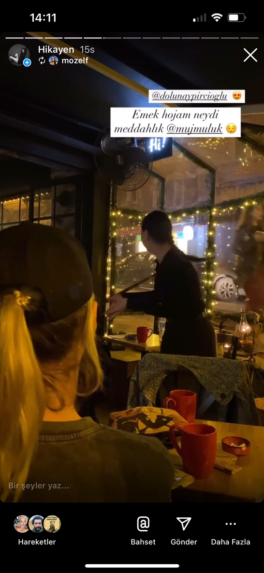 I went to a café and sat down. At the other tables, there were people spending time with their friends, chatting. I approached them and asked whether they knew about Meddah (a traditional Turkish storyteller) and if they would be interested if a woman suddenly started telling stories like a Meddah in a place. I also inquired what kind of stories would capture their interest and how long they would be willing to listen.