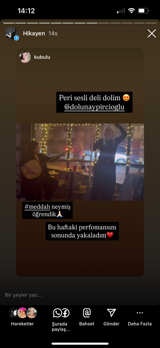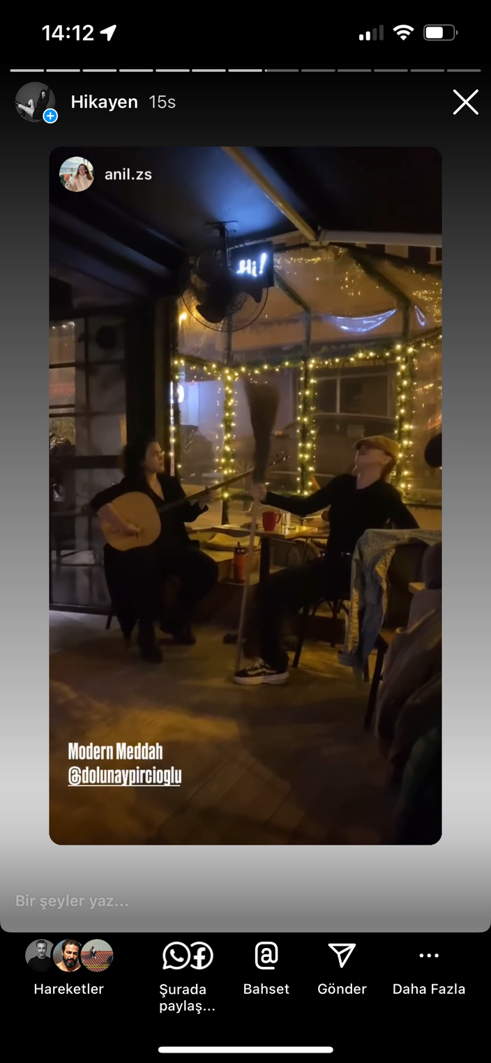 In his article "A Discussion on the Representation of the Public Sphere in Social Media," Sinan Gümüş examines the impact of social media on the behavior of modern individuals. According to this, social media allows people to express their opinions freely and quickly, thereby creating a more democratic environment. It also facilitates the rapid spread of interaction, news, ideas, and culture. For these reasons, I believe that social media plays an important role in my project. Sharing my work on platforms under titles like “modern meddah,” “a meddah performance,” or “female meddah” allows the project to reach more people, spark discussions, spread the word, and bring more women’s stories to light. It encourages people to think more deeply about these issues. In that sense, social media becomes a contemporary extension of the public space that the traditional coffeehouse once represented.