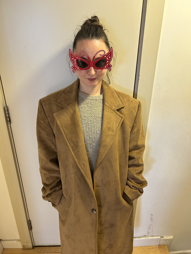 Feedback from my previous experiment suggested that I should make character distinctions clearer. To emphasize the character of Asude, a woman disguised as a man in the 1930s, I used a hat and a coat from that era, helping to establish a visual separation between myself as the narrator and Asude.