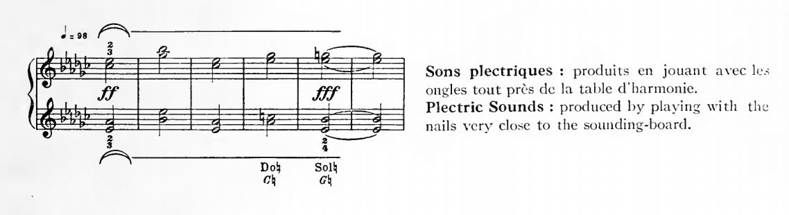 “...the tone-effects, so diverse and as yet so little known, which spring naturally from the direct contact established between the sensitiveness of the executant's touch and the vibration of the strings producing the sounds…”4