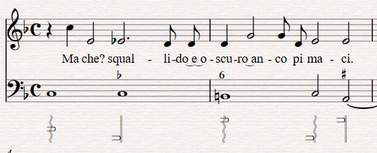 Thus begins our timbral realisation of “Ma Che? Squallido e oscuro.”1 This song was composed by d’India, with lyrics by the poet Tasso, both of whom wrote for the concerto delle donna, and originally published as a collection of other vocal soli which specifically mentions the arpa doppia in the title (Le Musiche Di Sigismondo D'india, Nobile' Palermitano: Da Cantar Solo Nel Clavicordo, Chitarone, Arpa Doppia Et Altri Istromenti Simili). The protagonist is a woman who has longed for a man who loved another. In this first line, she finds him dead on the ground, and still desires him physically. She kisses him, he is restored to life and goes back to his true love, the singer contented with the one kiss. Like Preti’s poem, the subject matter is jarring, dark and twisted. This is in order to focus on the sharp timbral contrasts in each phrase and the madness of those contrast as described in word painting of the time, and also to shed the preciousness of idyllic harp tone in favour of the original lyre accompaniment of epic poetry Seconda Prattica sought to emulate.