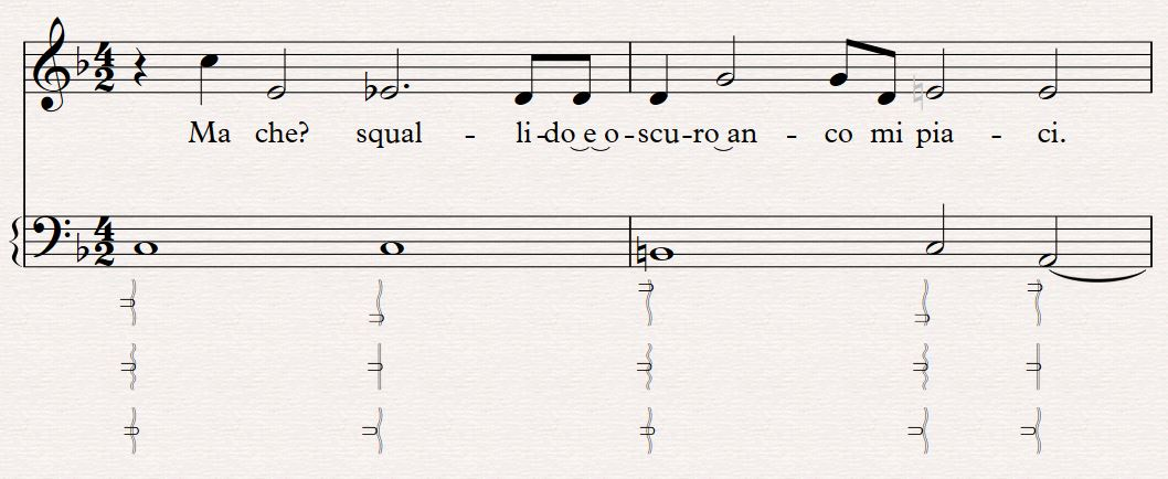 As a result of this, I created exercises which allowed me to observe and control these different elements distinctly. Here I have taken first two bars of the same song, and changed one element for each line of timbral realisation.