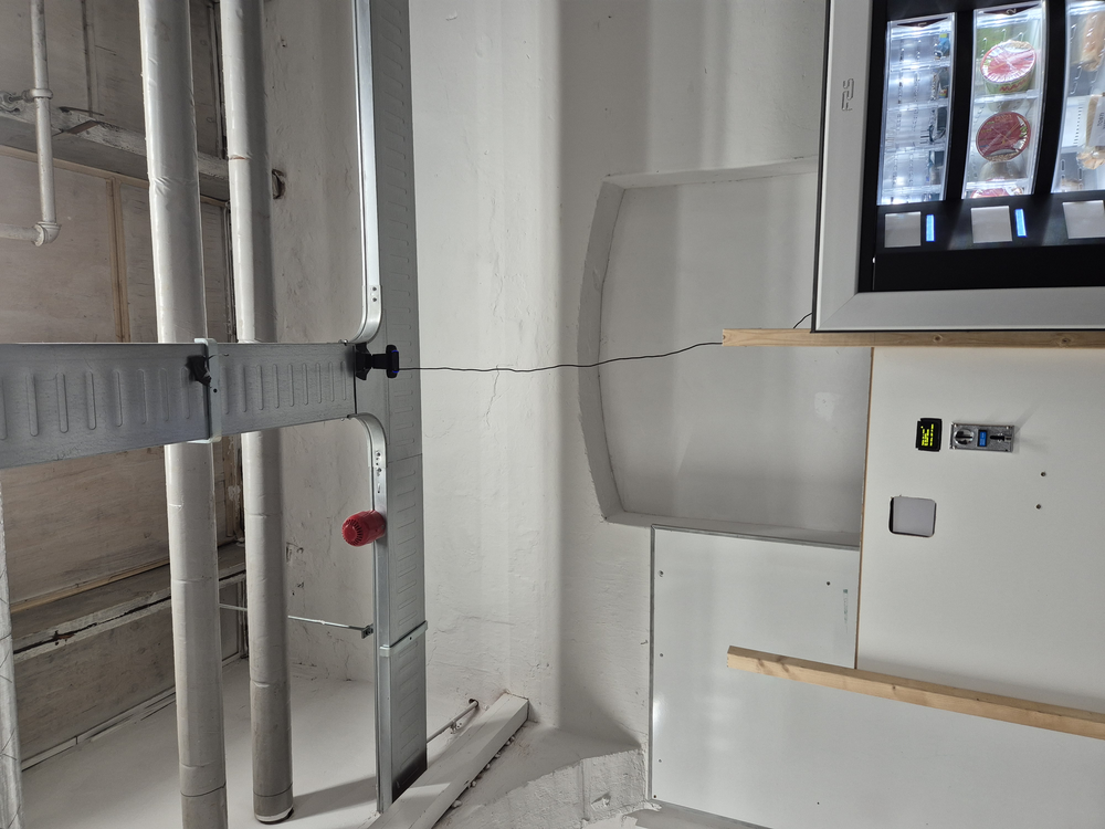 For Canteen Placement with Live Camera, I revisited the peepshow in a social setting, placing it in the canteen near vending machines. This version used a live camera with a slight delay, allowing viewers to see themselves or their surroundings. The canteen’s familiar and communal environment naturally attracted attention, blending the device with other transactional machines. The interaction highlighted how situating the peepshow in a public space with a familiar function (like vending) could encourage casual engagement and add a layer of staged interaction in an ordinary setting.