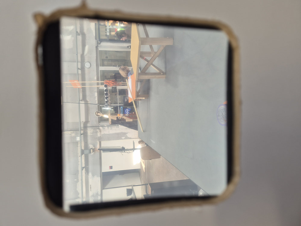 In my first experiment, Framing the Studio, I placed the peepshow device next to our studio, framing a view for Fine Arts students passing by. The device presented a controlled view, focusing on a segment of our studio space. However, this context alone didn’t prompt much engagement—most people walked by without interacting. This setup highlighted the need for a context that not only frames the view but also invites curiosity and involvement. I realized that simply offering a view wasn’t enough; the intrigue or perceived importance of what’s behind the frame plays a key role in encouraging interaction.