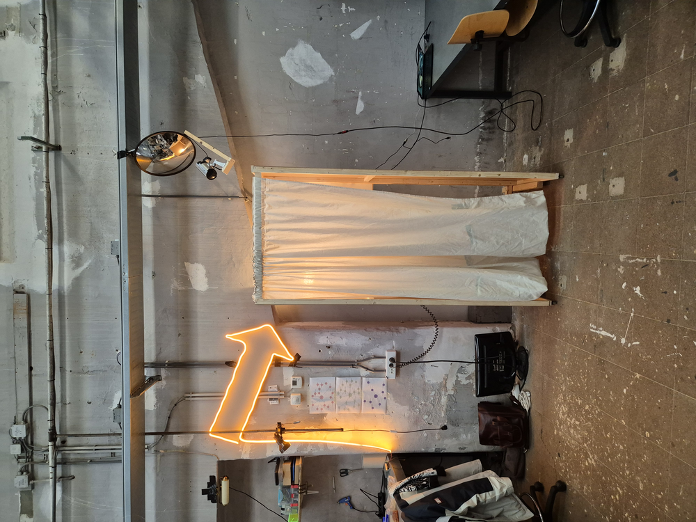 In this iteration, I refined the peepshow setup to introduce a deeper level of engagement and reflection. Participants kneel before a "biecht" (confessional) structure, guided by a soft light illuminating a pillow on the floor. The coin mechanism remained central to the interaction, displaying instructions for viewing durations based on the amount inserted. After a brief delay, the screen behind the lattice revealed the text, “What did you expect to find?”—a prompt intended to provoke introspection. Following this, a camera captured the participant’s image, which was used to generate an AI-based speculative reflection. The generated text was printed on a receipt, allowing the participant to take a physical artifact of the interaction with them.