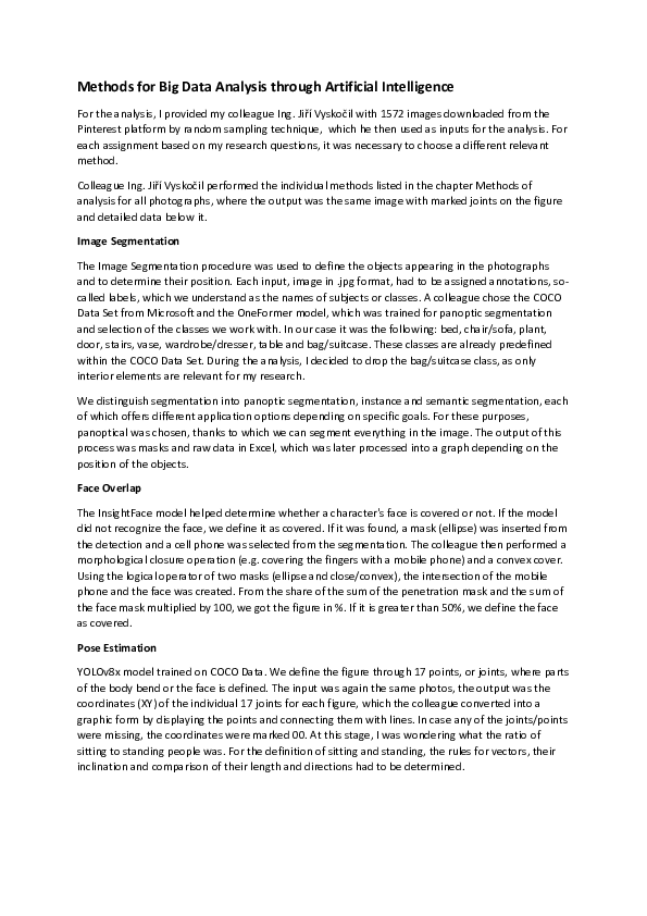 PhD candidate and colleague Ing. Jiří Vyskočil performed individual methods, which are described in the appendix, where the output was the same image with marked joints on the figure and detailed data below it. I obtained all the analyzed data through Excel tables, which I further processed in written and graphic form.