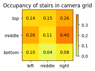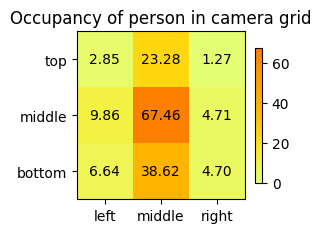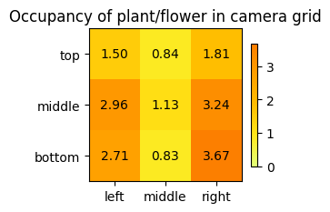 The common attribute of the photographs was the position of the figure in the picture. The visualization below captures 9 segments of the image (created after division using the rule of thirds) with the percentage representation of the character in a specific segment. In most cases, there was a figure, and in the middle sector of the frame it usually occupies 70%. The corners of the picture are minimally occupied by the figure. The saturation of the color segments corresponds to the frequency of occurrence of the position. The most common position of the figure is therefore the center itself and the spaces above and below it. For greater clarity, I am also attaching a photo where the grid is transferred to the image itself.