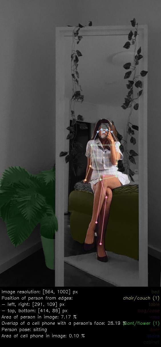 The input for the analysis were images downloaded from the Pinterest platform, which I obtained using the method of random sampling algorithm. Over the course of two weeks, I used the Pinterest website, where I entered the term mirror selfie woman and randomly downloaded images, both on the default page and through other clicks. In this way, for scientific purposes, I downloaded the mentioned 1572 photos of women taking pictures of themselves with a mobile phone in a mirror.