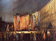 In his painting « La commedia dell’Arte sulla piazza San Marco» (1720-1723), Giovanni Antonio Canal, a.k.a. Canaletto - who started to paint helping his father to realize theater landscape backdrops for Venetian Sant’Angelo and San Cassiano theaters - pictures a stage setting for a theater performance at the sunset on the Piazza San Marco in Venice.