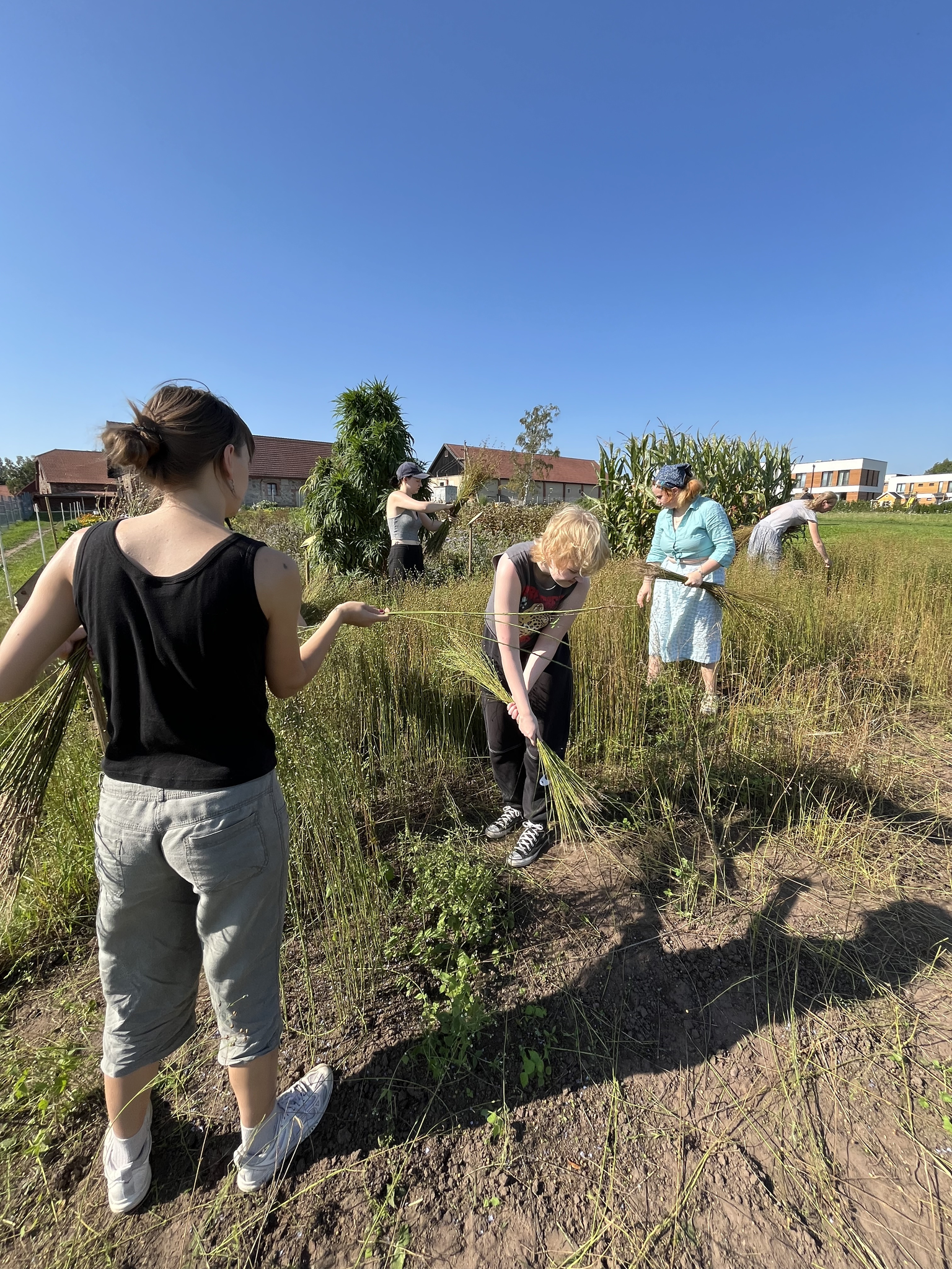 I first grew flax in 2022, when I needed raw material for my thesis at the Estonian Academy of Arts. A 70-square-meter flax field was prepared at the Estonian Agricultural Museum, and I received valuable help from textile students at Pallas University of Applied Sciences.