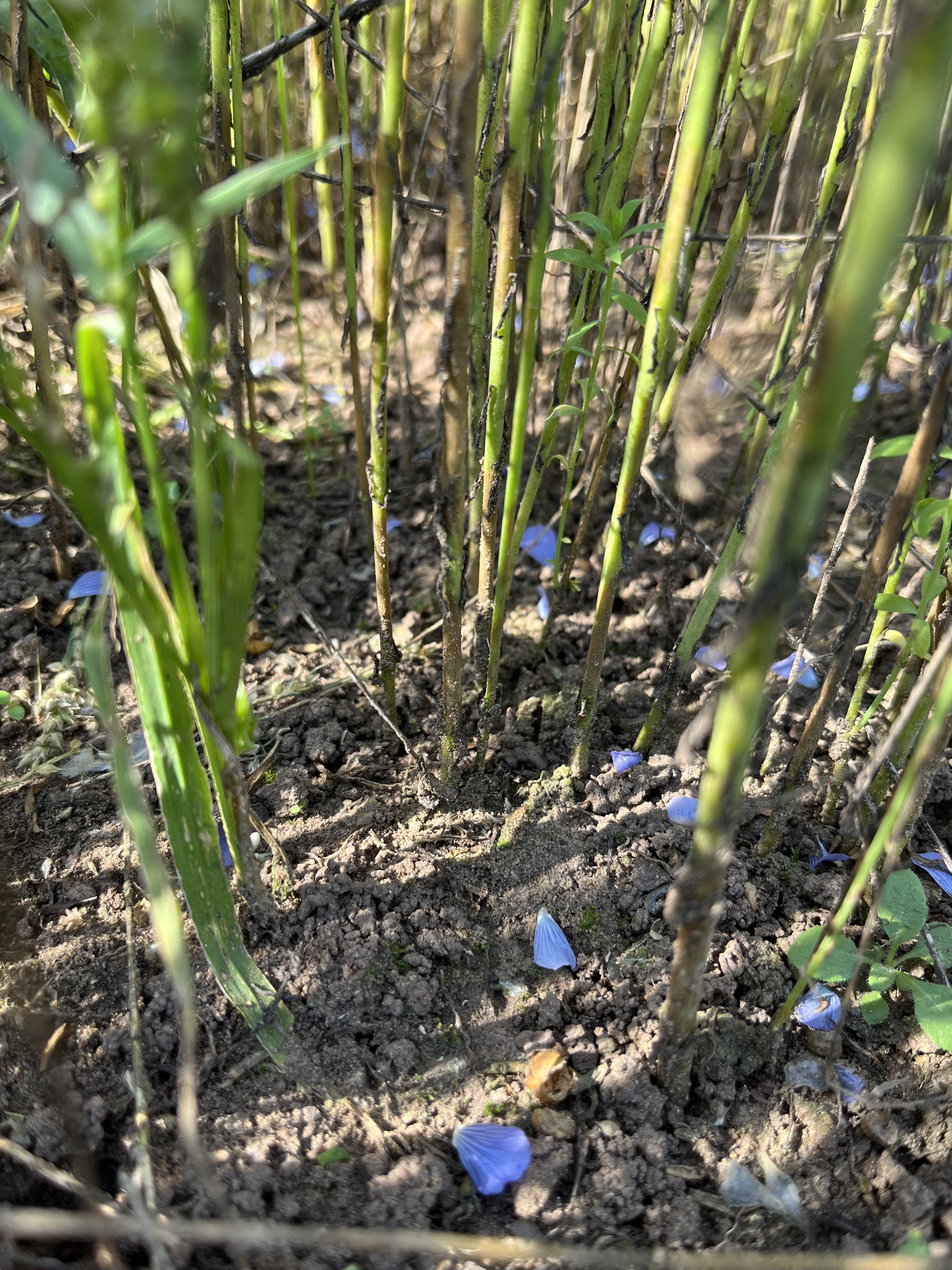 We picked the plants, removed seeds and set them evenly on the ground for dew retting.