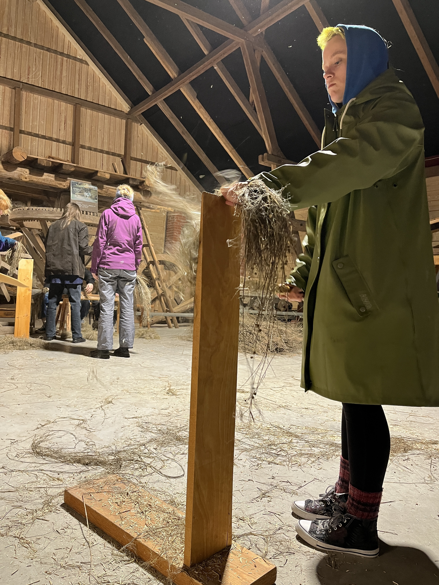 Since then, I have continued this collaboration each year – inviting textile students to sow, harvest, and process flax at the museum. This hands-on process provides them with a holistic understanding of bast fibers, the natural cycles that influence them, and the journey from plant to textile.