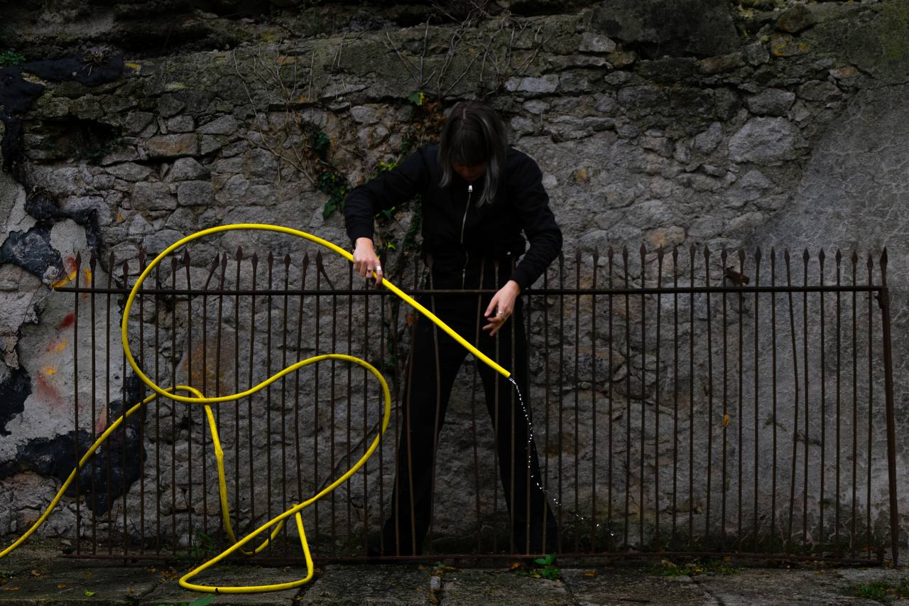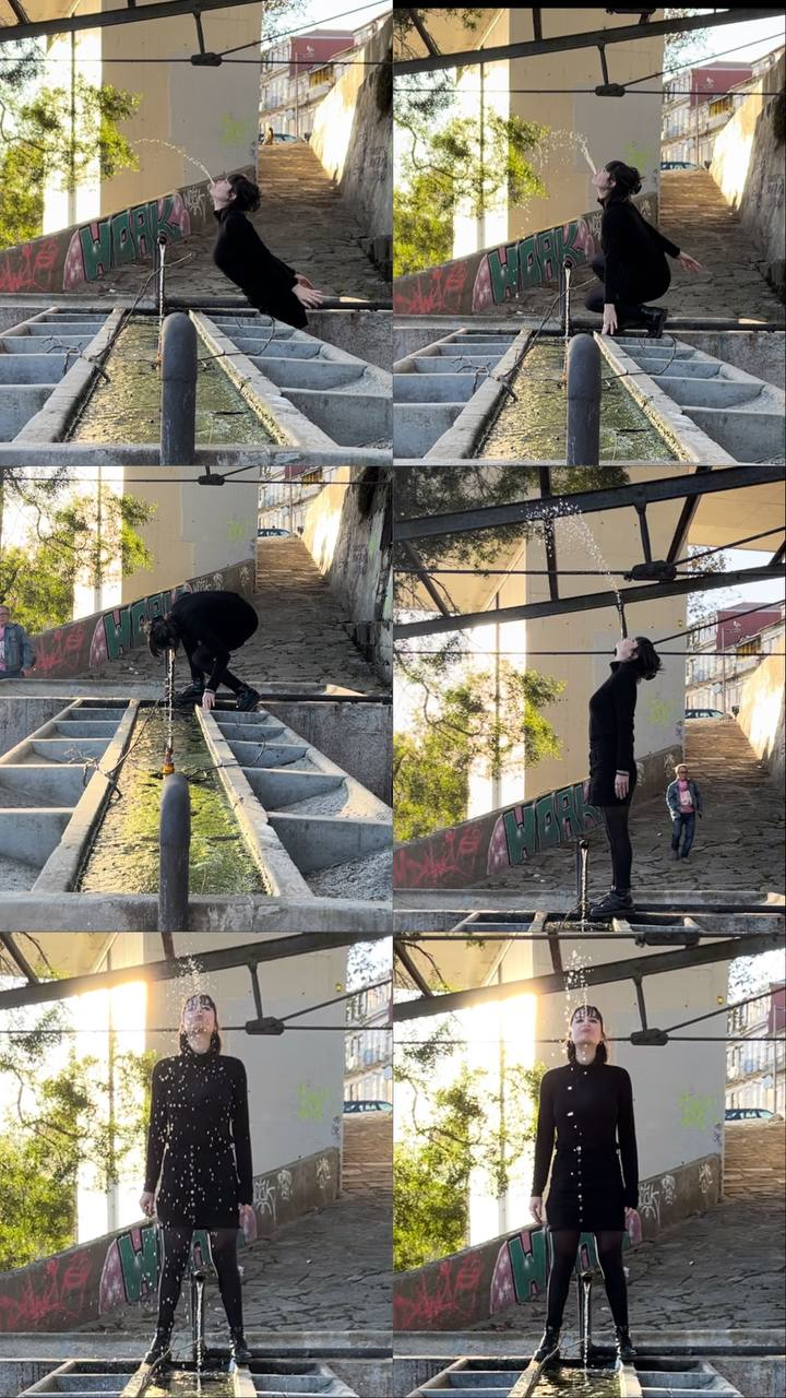 As a warm-up and familiarization with the place.To emphasize the character of the place, the action was carried out as a living fountain. The action lasted 7 minutes. During its performance, observation of the place and passersby was carried out, as well as their reactions to the noticed action in a public place.