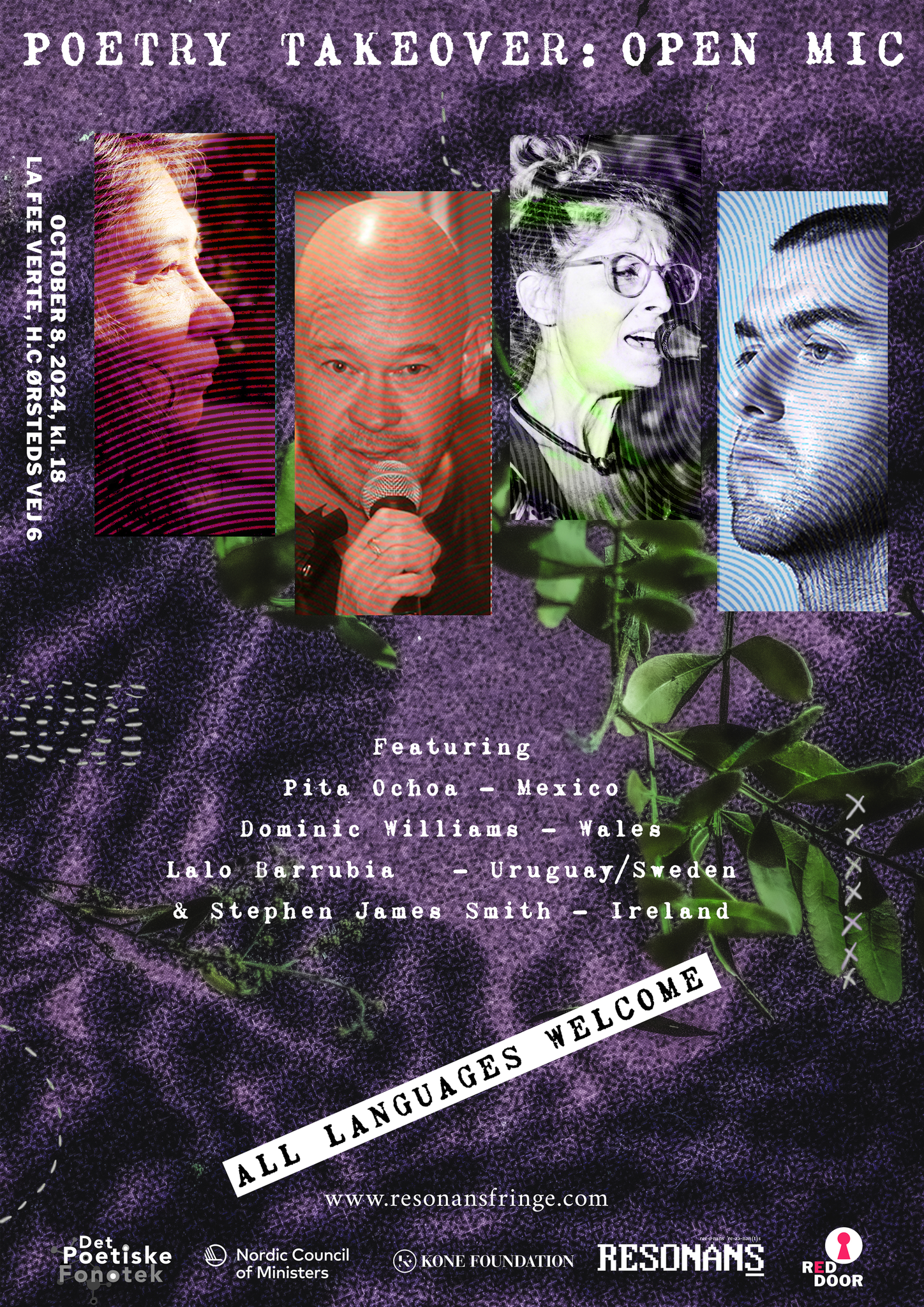 The festival opens with a reception at the Red Door, featuring a multimedia art exhibition by Esben Holk, "FEED" accompanied by a poetry open mic and concert at La Fee Verte.