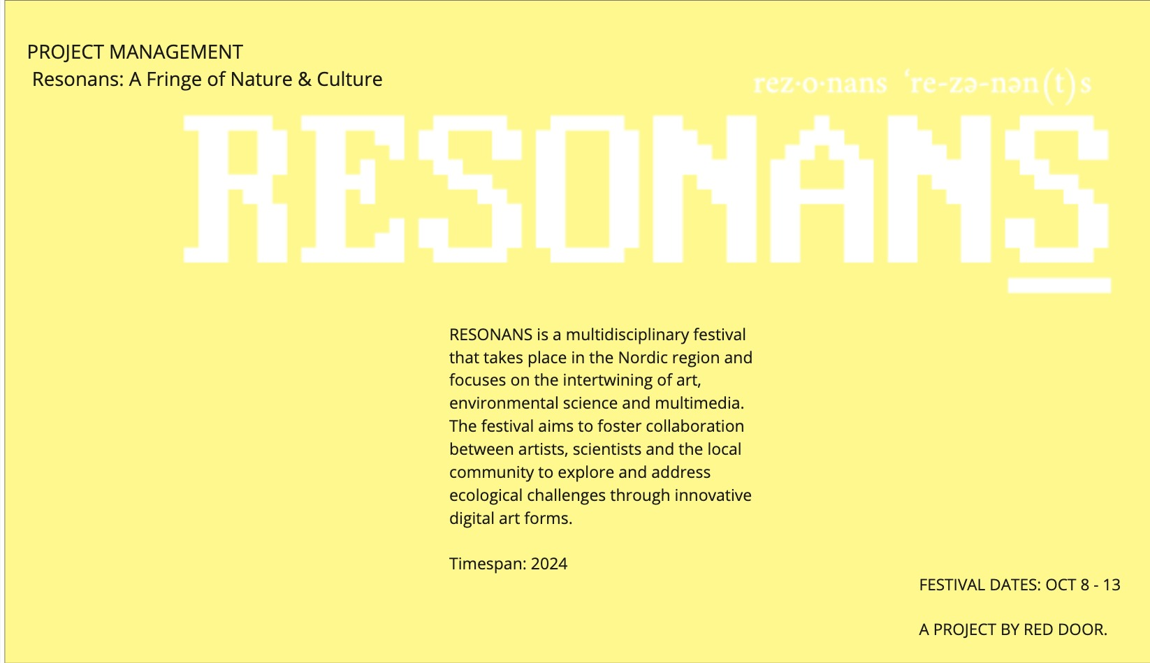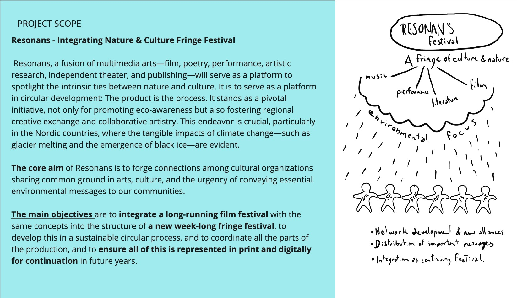 The RESONANS festival is committed to significant themes, such as humanity's relationship with the environment and the diversification of the Nordic cultural landscape.