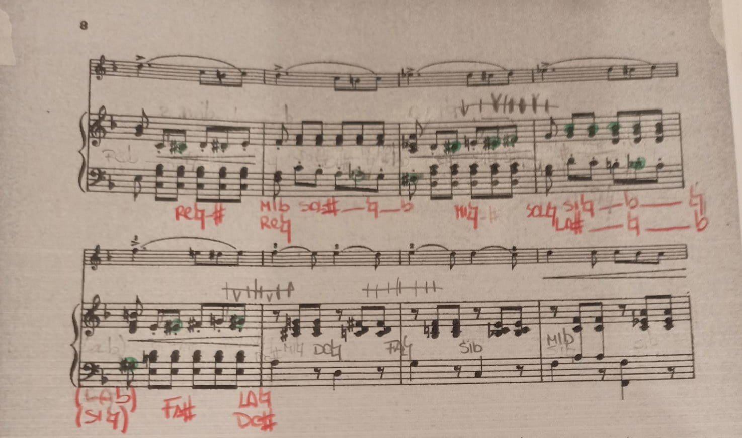 In this part there is also a very complex chromatic transition. In this case observing the use of chromaticisms, it is possible to see how Munier carefully planned this step by step; but through enharmony I managed to solve the problem and play the passage.