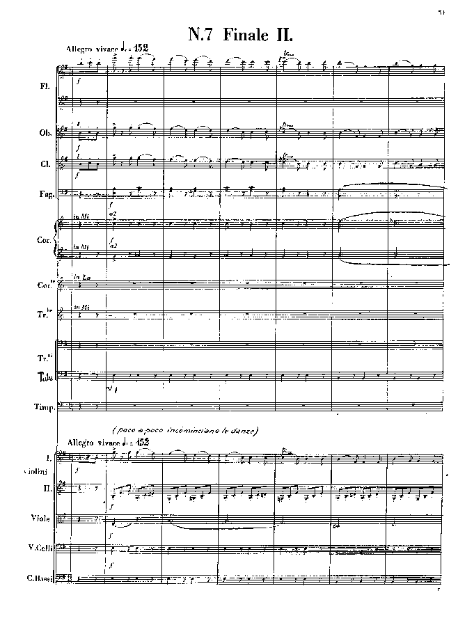 The same theme is already anticipated in the Overture before these scenes, and perhaps it is precisely from where Munier takes the theme. In the Overture, in fact, the theme is inserted in a pure, playful, cheerful way, presented several times with small variations. Going more specifically, the first time the theme is given to the celli, while the violas accompany with a triplet rhythm that recalls the one used by Munier on the piano.