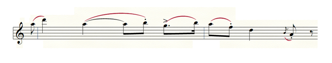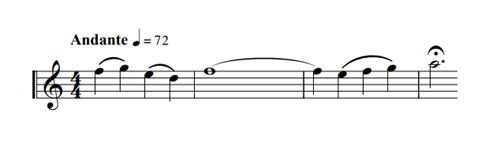 Frederick's theme continues in the Dorian mode, and the use of syncopations and dotted notes gives it a character similar to that of Al-Kamil’s theme, reflecting the parallels between their historical personalities. Like the other themes, it appears primarily in a varied form.