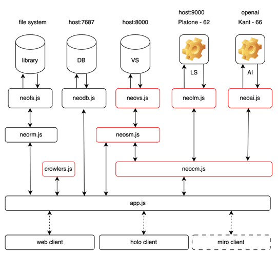 Responding to Francesco d’Isa’s invitation to see artificial intelligence as a mirror, we present below a summary that outlines the internal structure of °'°Kobi, allowing the reader to undertake a meta-reading that captures the overlaps and dissonances between the processes that animate artistic creation and those that underlie the °'°Kobi knowledge ecosystem.