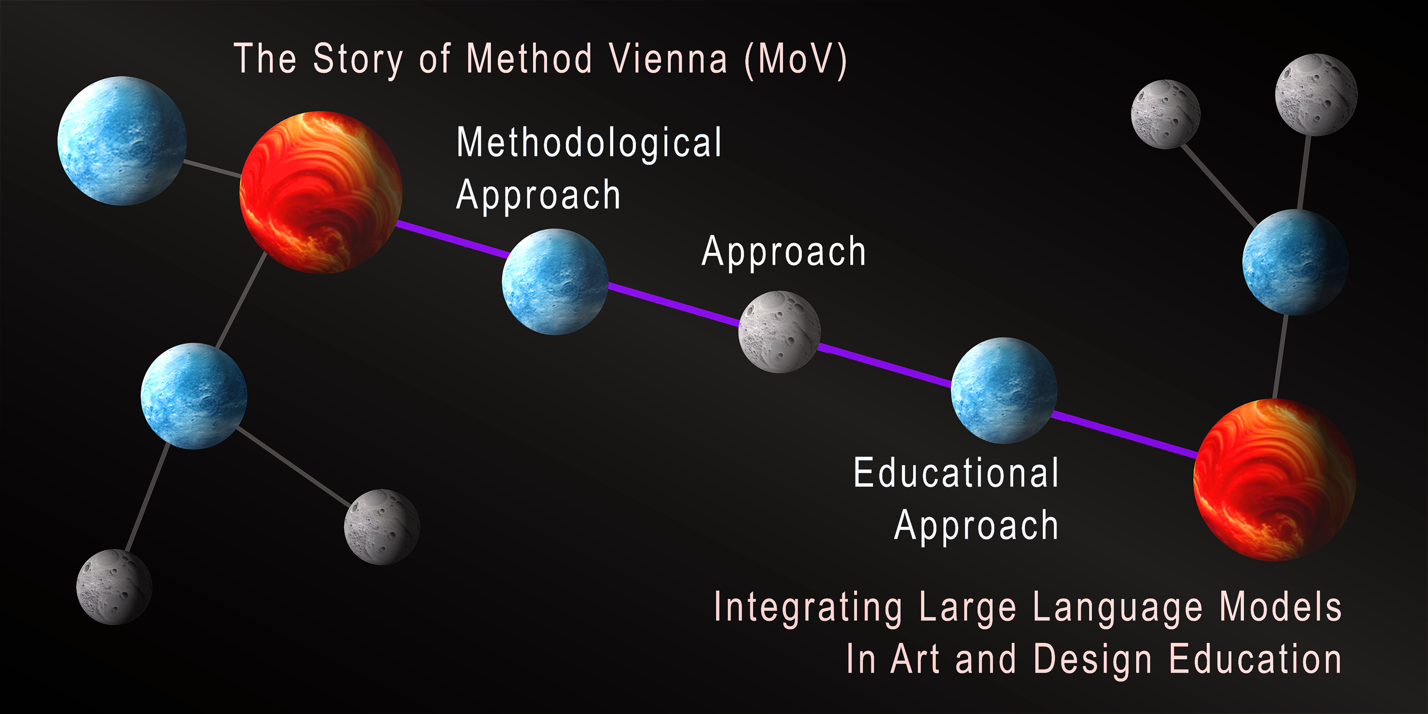 °'°Kobi presents itself to the user with two different interfaces: a chatbot, which allows for a conversation on a topic proposed by the user, and “Universe,” a constellation of thematic and conceptual nodes designed to be explored even in augmented reality. The Universe is characterized by spheres of different sizes and colors, which respectively distinguish semantic contexts, concepts, and keywords, interconnected by a network of lines created by the principle of semantic proximity. With these two exploratory modes, °'°Kobi offers an experience that informs and deconstructs, leading to unexpected places and expanding the horizon of discovery and learning.