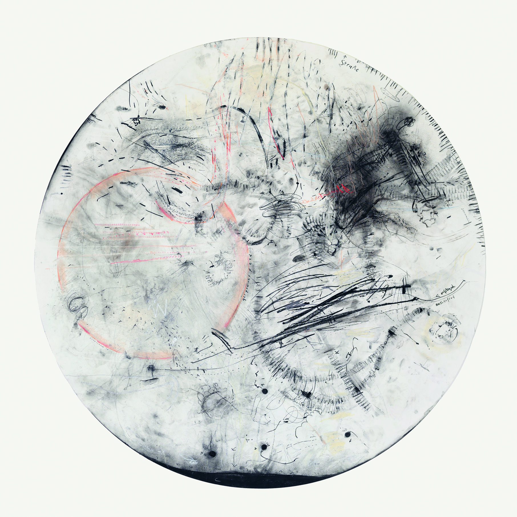 artifacts of notation: 1 circular drawing with various colored pastels, chalk and pencils on white paper, d=140 cm