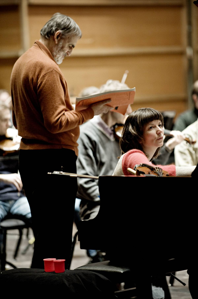 From a rehearsal of Ausklang. Helmut Lachenmann, Ellen Ugelvik and Bergen Filharmoniske Orkester