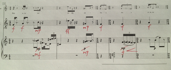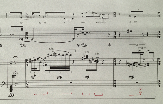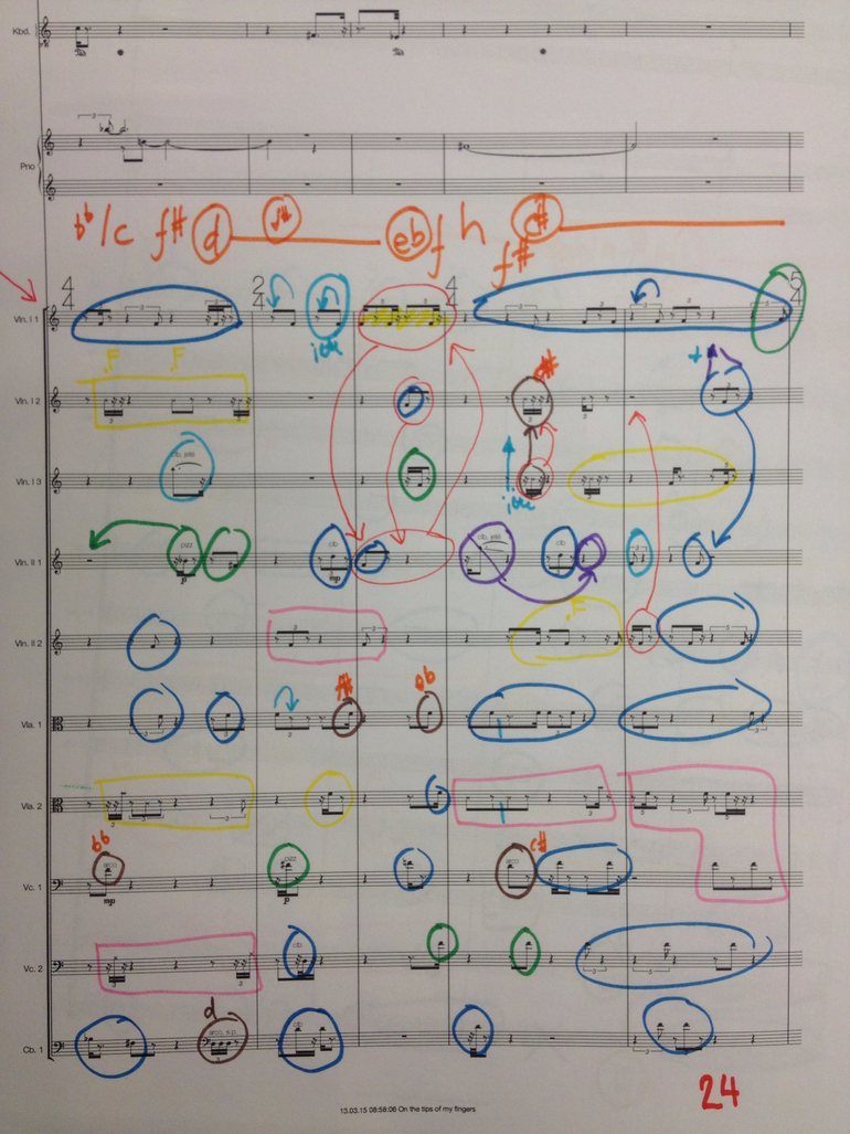 If I felt that something in the material was not working (for example, if there was too little time to prepare for an action to be executed inside the piano) or the sounds were too indistinct, we made changes by my abilities and suggestions. Thorsen willingly shared her notes and thoughts throughout the process.