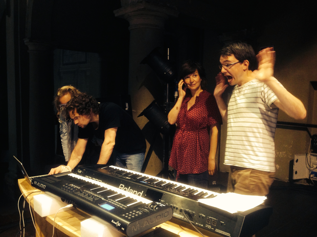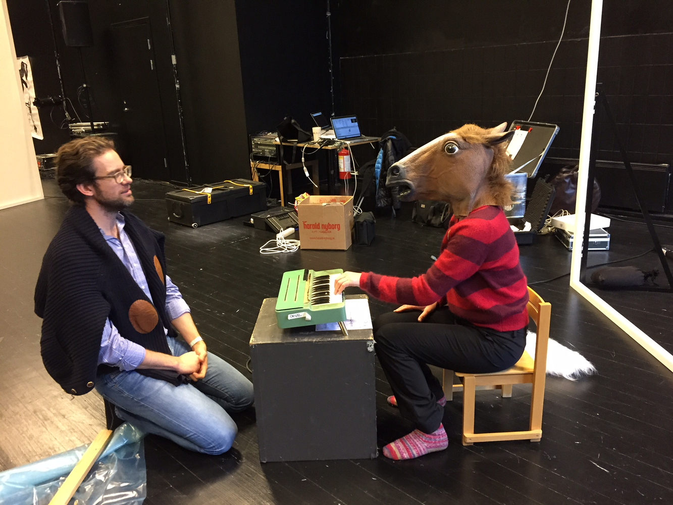 Composer Erik Dæhlin and Ellen Ugelvik in a workshop on PØL PØL LØP from 22.12.2015