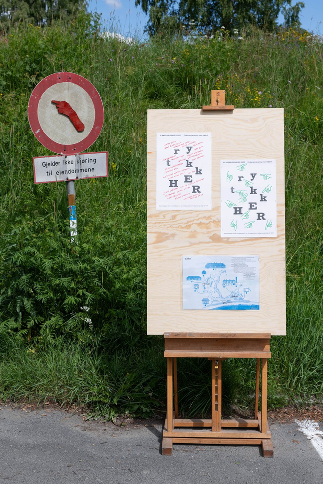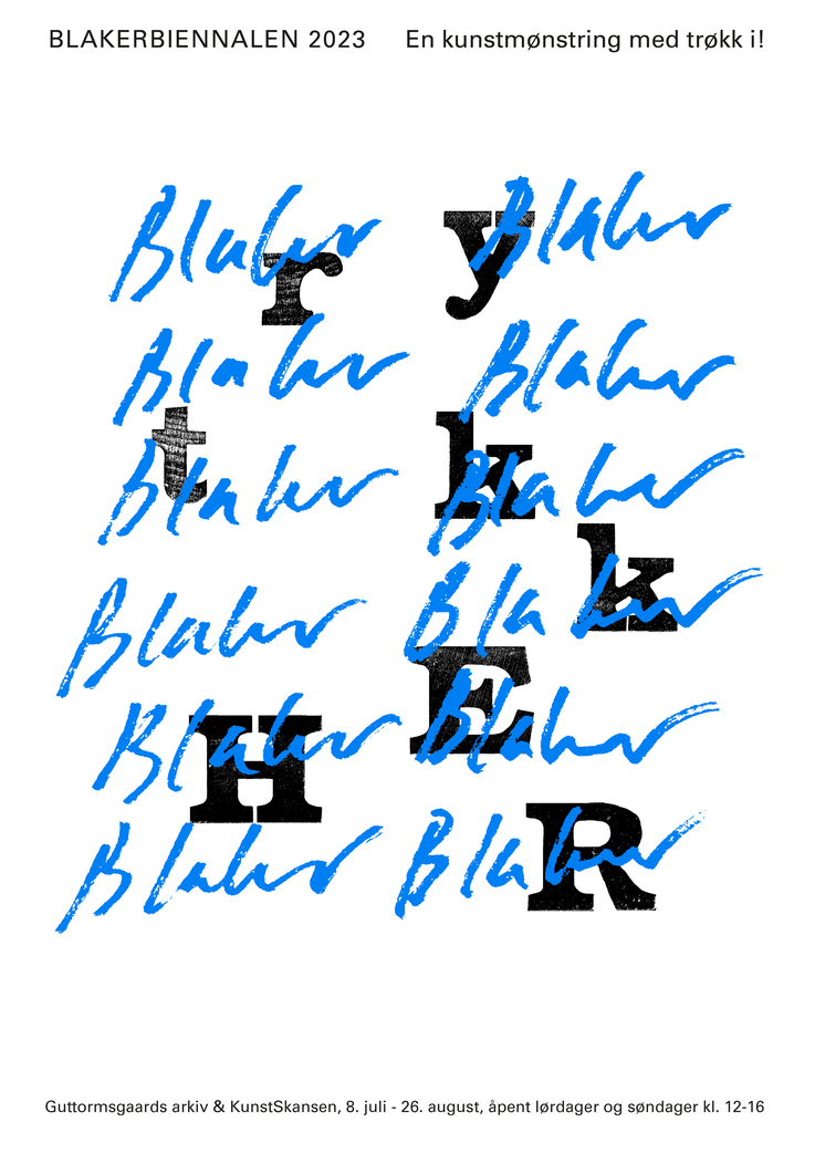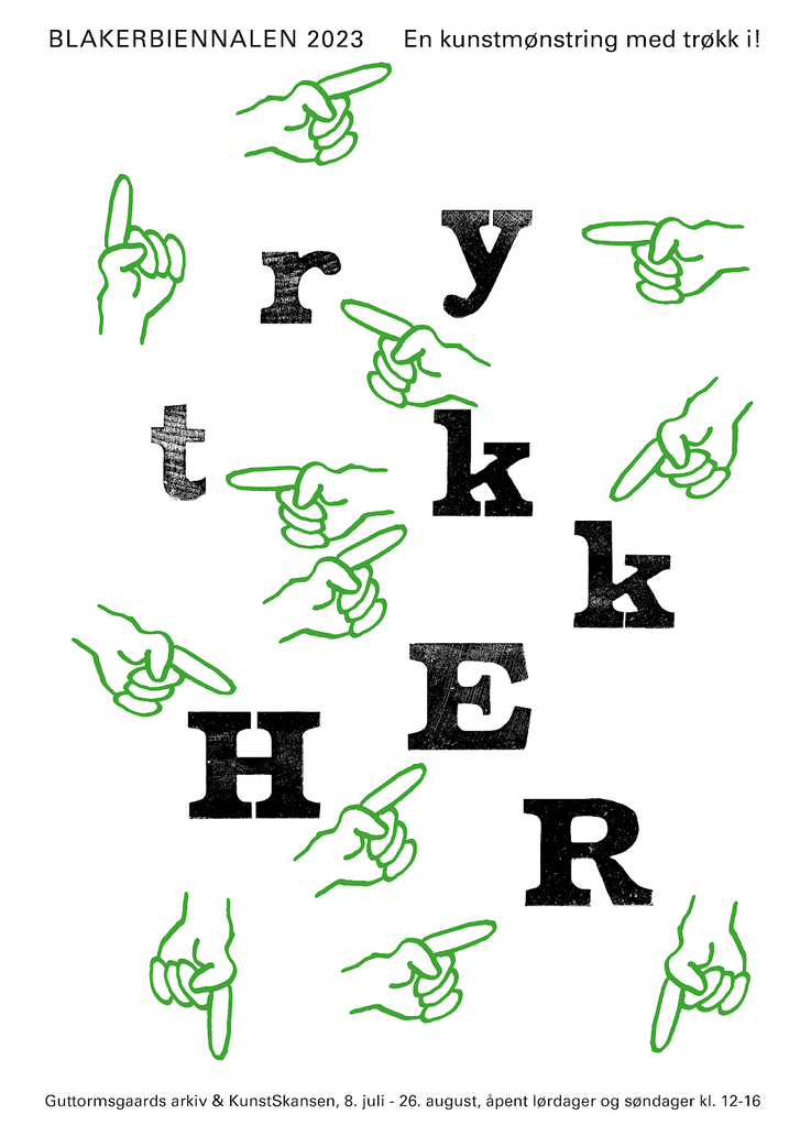 Trykk her er den første Blakerbiennalen. Mønstringen presenterer et tosifret antall kunstnere i historiske omgivelser på festningsanlegget Blaker skanse og Blaker gamle meieri.