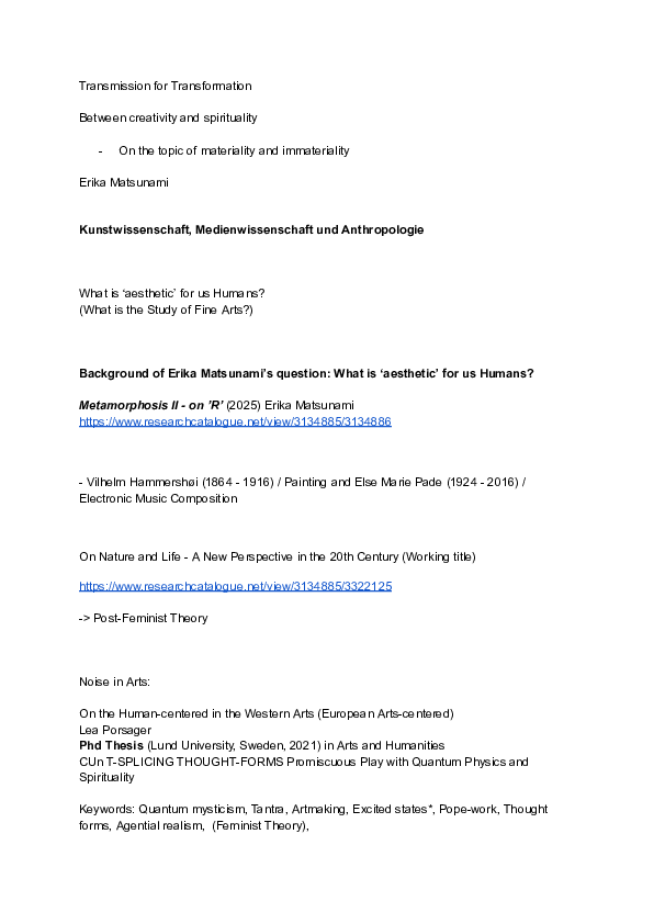 This research is an advanced research of Metamorphosis - Ethics and Aesthetics are One - from a Neuroscientific Perspective in 2024. I explore post feminist theory from a new perspective in the 21st century. Thereby I deal with spatiality between virtual reality and physical space theoretically and practically. Wittgenstein's "Ethics and Aesthetics are one" is the starting point of this research. "In the Notebooks, Wittgenstein states that 'the world and life are one', so perhaps the following can be said. Just as the aesthetic object is the single thing seen as if it were a whole world, so the ethical object, or life, is the multiplicity of the world seen as a single object". (Diané Collinson, The British Journal of Aesthetics, Volume 25, Issue 3, SUMMER 1985, pages 266-272) Art transcends boundaries of race, nationality and gender. It is a creative act of unifying in the context of humanity, from the subject to the various topics, by asking questions. This point is the lack of "reality" (dealing with reality) from a sociological perspective. But it is impossible to define humanity and reality based on sociological statistics alone–is my perspective of Wittgenstein's "Ethics and Aesthetics are one". Thereby, I examine 'world and life' from the 21st century perspective.