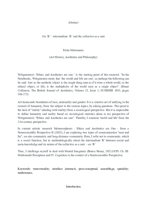 Das Vorhaben mit dem (Arbeitstitel) Titel „Leitmotiv“ hat zum Ziel, das Thema „Location – Lokalisation“ im Kontext von Kunstwerken zu erforschen. Fünf Künstlern, die ich erforsche in meiner künstlerischen Forschung „Metamorphosis“ (2024–): In Österreich Valie Export, in Deutschland Rebecca Horn, in Frankreich Marc Battier und in Frankreich Joseph Nechvatal (Paris/NYC) sowie im Vereinigten Königreich Max Eastley. Um die Ressourcen des Projektes im nächsten Jahr zu erfassen, werde ich ihre Archive und/oder ihr Studio aufsuchen, um Ihre Arbeit und Umgebung zu erkunden – von Ort zu Ort. Der Fokus liegt auf Parallel Worlds; Ich reflektiere nun bezogen auf das Jahr 1945 im 20.Jahrhundert zurück, indem ich ihre Arbeiten und ihr Umfeld betrachte. Diese Ressource wird zu einem späteren Zeitpunkt erfasst und durch Analogue- sowie Digital-Cybernetics konzipiert. Aus heutiger Perspektive möchte ich die historischen Kunstwerke nicht als Ikone der Kunst, sondern als kreative Gemeinschaft, Organismus und soziale Kybernetik weiterverfolgen.
