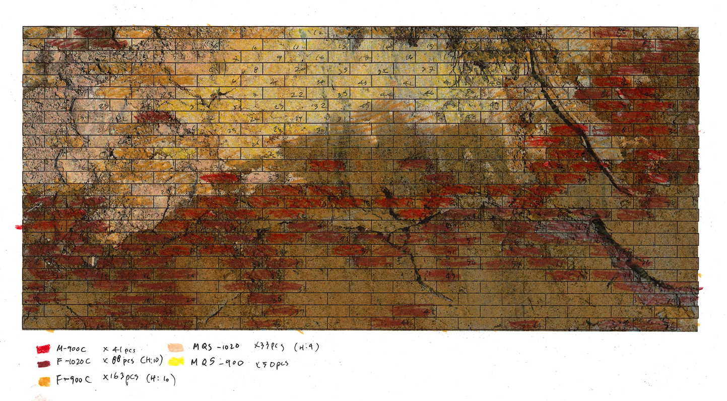 Four hundred and sixteen bricks are made from Finnish clay to recreate the First TV Image of Mars (Hand Colored), 1965, NASA