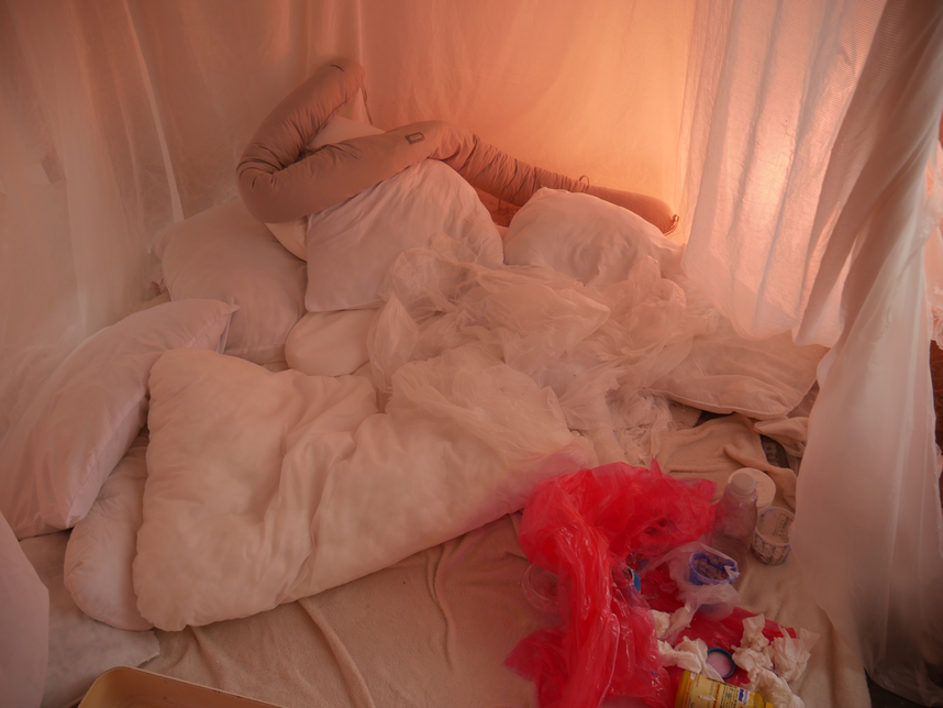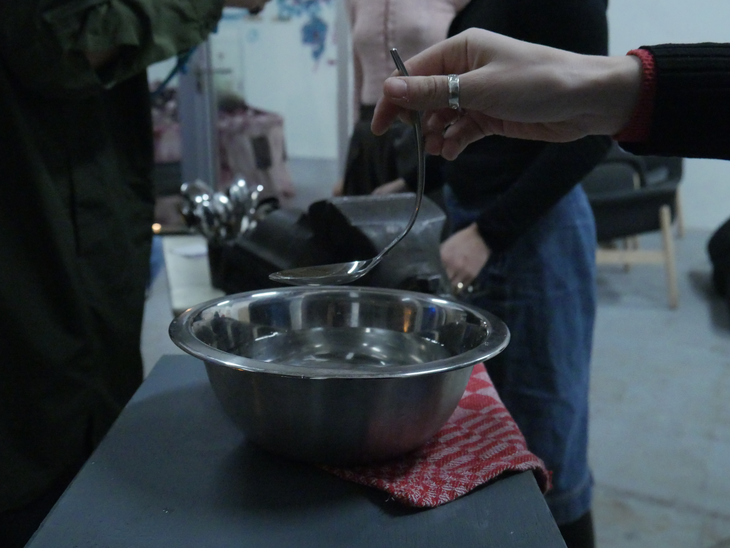 Closed off from the outside world, visitors listen to moving and penetrating life stories of unknown local residents, while enjoying a hand massage.