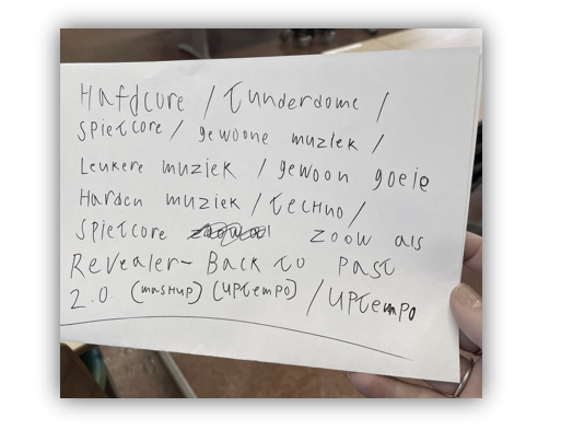 De les erna gaf Tom deze lijst aan mij. Hij had deze lijst gemaaakt met de liedjes die hij mooi vindt en graag zou willen spelen. Zijn referentiekader is duidelijk hardcore. Helaas net een vorm van muziek waar ik niet zo heel veel mee kan als het gaat om een beginnende klas.