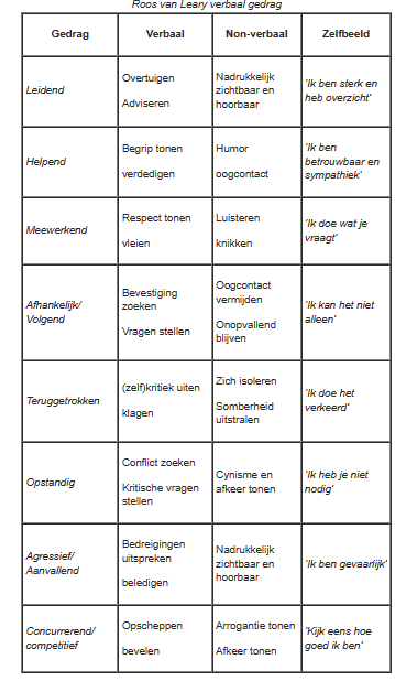 De Roos van Leary is een instrument door de interactie te begrijpen en beinvloeden, zodat je invloed en impact kan vergroten. In 1957 is het voor het eerst gepubliceerd en later door Leary Academy verder ontwikkeld.