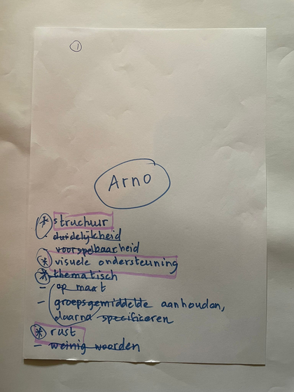 Ook op deze pagina staan de verslagen van de gesprekken die ik met Janne Eijsing en Arno Maas heb gevoerd. Ze zijn allebei vakdocenten in het speciaal onderwijs. Ik heb hun dezelfde oefening laten doen als ik in het begin zelf gedaan heb. Een woordweb maken en vervolgens inzoomen op 2 handvatten. Wat zouden zij als belangrijke tips hebben voor muziekdocenten is de vraag die centraal stond.