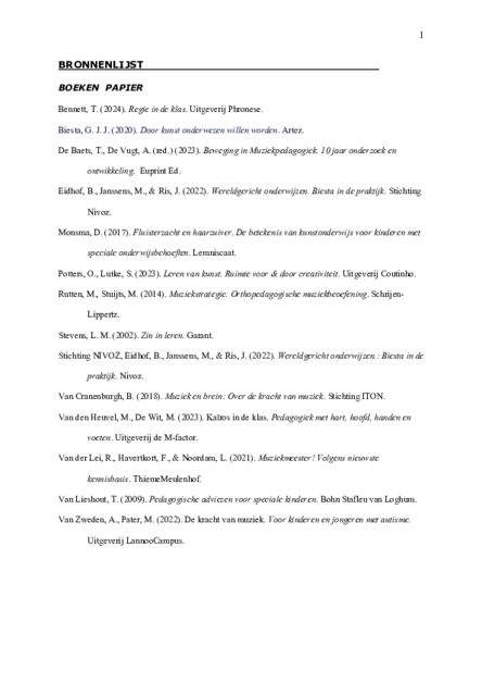 In de bronnenlijst heb ik een onderverdeling gemaakt tussen websites en artikelen online en boeken van papier.