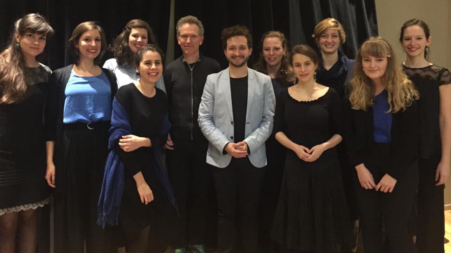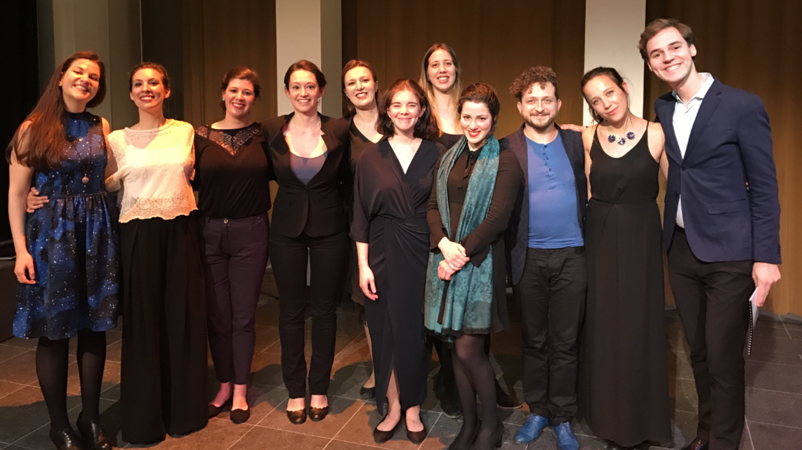 Unfortunately, the scheduling of rehearsals was very difficult and I often ended up coaching 2-3 singers instead of most of them, but even that seemed to be helpful. A bit before the concert the pieces were on a level that we could invite the composers to work on them (ideally this could have happened much earlier with better organising). This input too made a huge difference of course in the final performance and was a big boost to the learning process of both sides.