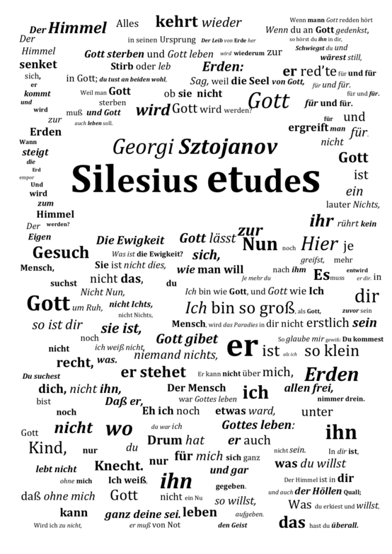 The cover page of 'Silesius etudes', the booklet I wrote for small warm-up exercises, that can be performed with aleatorics and group improvisation as concert pieces.