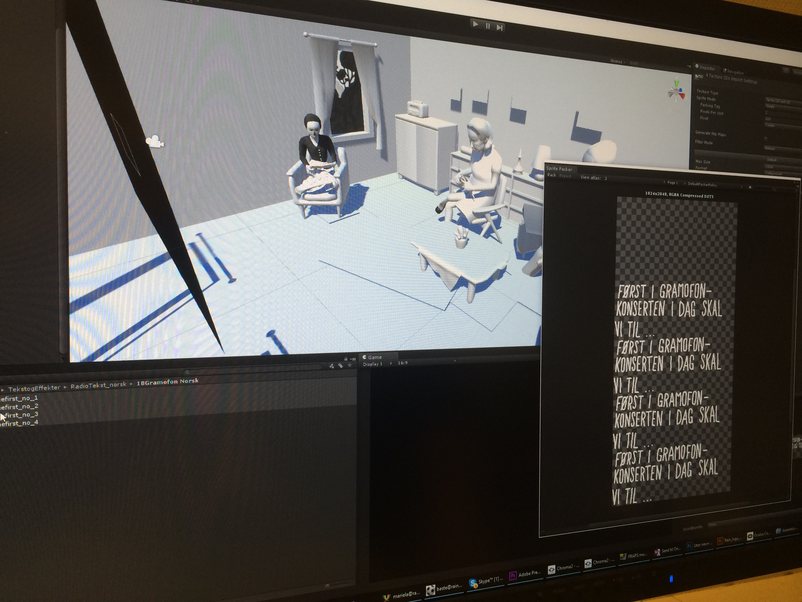 Late in 2015 I made a 3D version of the story frame of Sound of the Aurora, which takes place in a living room. My intention was to have a free mobile frame within this space. With help from 3D modelator Aslak Helgesen, I made a 3D space with a virtual camera. The presentation was programmed in Unity by Thomas Tussøy. I used a highly sensitive sensor controller – an Oculus Rift headset – to handle the virtual camera and move around inside the virtual tableau.